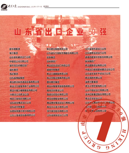 新华锦集团在山东省外经贸厅公布的“山东省出口企业50强”中居首位 - 2003 - :: HIKING GROUP 新华锦首页(国际贸易)(金融投资)(老年颐养) ::