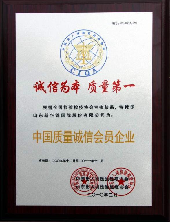 中国出入境检验检疫协会中国质量诚信会员企业 - 2010 - :: HIKING GROUP 新华锦首页(国际贸易)(金融投资)(老年颐养) ::