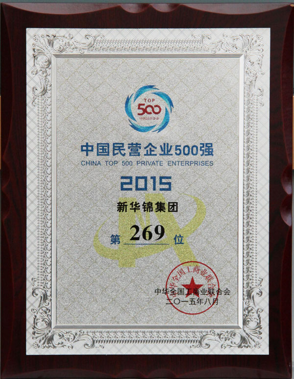 2015中国民营企业500强中第269位 - 2015 - :: HIKING GROUP 新华锦首页(国际贸易)(金融投资)(老年颐养) ::
