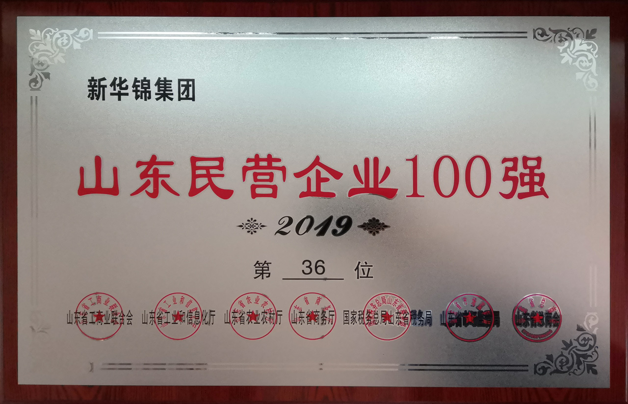 2019年山东民营企业100强第36位 - 2019 - :: HIKING GROUP 新华锦首页(国际贸易)(金融投资)(老年颐养) ::