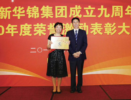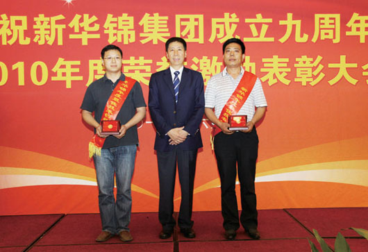 在欢快的乐曲声中,张董事长分别向荣获“新华锦最佳创新团队”、“新华锦最佳和谐团队”、“新华锦最佳管理团队”的员工代表颁发奖牌,向荣获“新华锦年度最佳技术创新员工”、 “新华锦年度最佳责任员工”、“新华锦年度模范员工”、 “新华锦年度突出贡献员工”和“新华锦优秀企业家”的先进个人颁发金质奖章。随后,获奖团队和个人代表、员工家属代表先后上台发言。