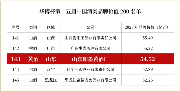 品牌价值54.52亿元 即墨老酒入围中国酒类200强