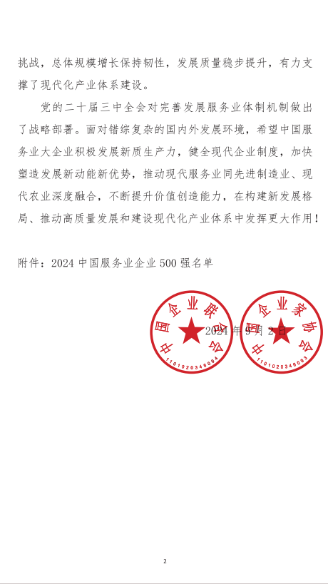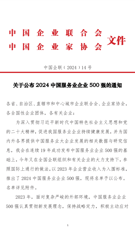 “中国服务业企业500强榜单”由中国企业联合会、中国企业家协会联合发布。榜单以企业营业收入为入围标准,全面、系统、真实地反映全国服务业企业发展的现状和未来的发展趋势,已连续发布20年,是衡量服务业企业地位的权威榜单。