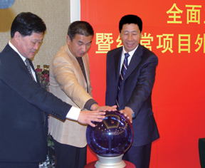 栾建胜行长、张建华董事长和王迅行长先后致辞。新华锦集团副总裁刘笃平和工行青岛分行副行长吴刚代表合作双方签署了全面业务合作协议。王迅行长、栾建胜行长和张建华董事长共同启动了象征双方紧密合作的水晶光电球。(本报记者)