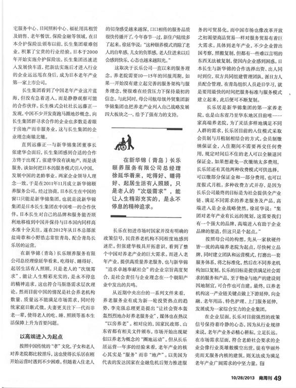 新华锦长乐:老年产业样本(商周刊) - 媒体报道 - :: HIKING GROUP 新华锦首页(国际贸易)(金融投资)(老年颐养) ::