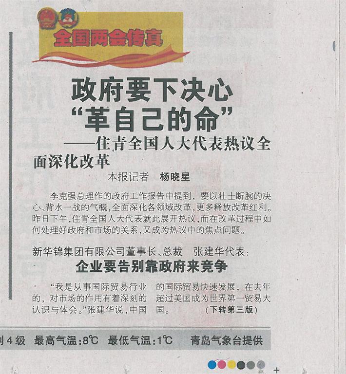 “ 我是从事国际贸易行业的,对市场的作用有着深刻的认识与体会。”张建华说,中国的国际贸易快速发展,在去年超过美国成为世界第一贸易大国。 (下转第三版)
