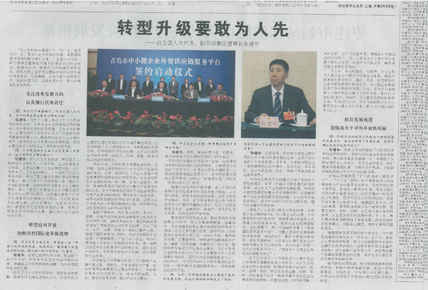 张建华:作为人大代表来讲,我知道自己的责任不仅是站在一个局部的、企业的角度去谈问题,还要关注整个社会发展的问题。这次我带来了三个方面的建议,一个是关于社会化养老问题,提出了建立健全我国护理保险制度的建议;第二个是关于外贸转型升级,提出了完善配套政策,支持外贸综合服务企业发展的建议;第三个是关于在青岛设立中日韩自由贸易区先行示范区的建议。这些建议都是通过广泛详尽的调查研究基础上形成的,它们既有涉及区域发展、产业发展的,还有关乎民生的,希望能切实地反映基层的诉求,用我力所能及的方式做点实事,履行好人大代表的神圣职责。