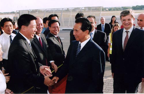 2004年9月6-21日,中共中央政治局常委、中央纪委书记吴官正同志率领中共中央代表团访问了南亚的斯里兰卡、马尔代夫和东南亚的印度尼西亚、马来西亚及菲律宾五国。根据中央有关领导和中联部的指示,山东省省委、省政府组织了山东省经贸代表团随同中央代表团前往五国开展贸易洽谈和促进经贸合作等工作,配合中央代表团的出访任务。张建华总裁率山东外贸集团和新华锦集团有关人员应邀参加了山东经贸代表团,随中央代表团对五国进行了访问。 出访前,韩寓群省长、孙守璞副省长及省政府马越男副秘书长在济南会见了省经贸代表团的全体成员。韩省长作了重要指示,阐明了出访的政治意义以及对开展我省与南亚、东南亚五国经济合作的重要性,并对代表团的工作提出了具体要求。孙守璞副省长对代表团提出了五点要求。张建华总裁在会上就准备情况向省领导作了简要汇报。 访问期间,吴官正书记在会见山东代表团时,对代表团的前期准备工作给予了充分肯定,并对代表团的工作作了重要指示。此次访问,新华锦集团与外贸集团取得了重要的经贸成果。