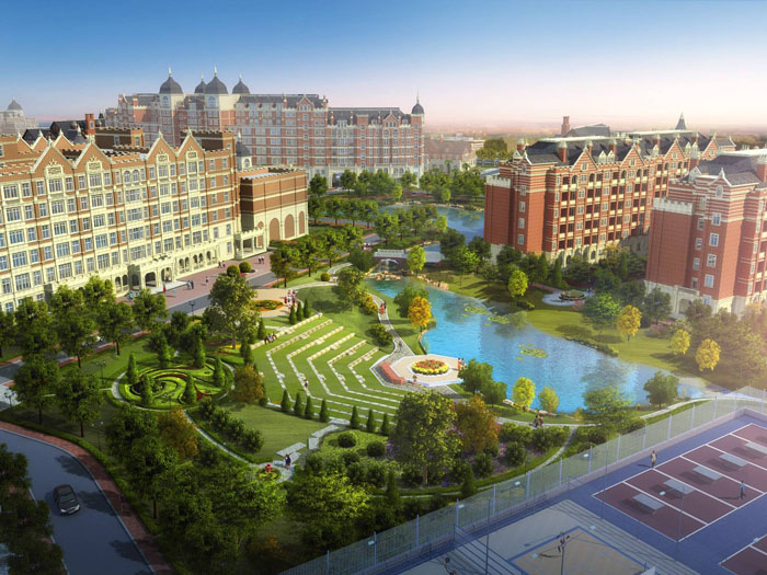 商业配套板块,项目内规划欧洲风情小镇、东亚文化街、养生小镇等商业街区,满足区域内多样化的消费需求,建设集休闲、购物、娱乐、办公为一体的商业中心。