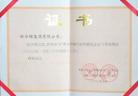 2003年9月,新华锦集团被青岛市银行信用最佳企业评定委员会和中国人民银行青岛市中心支