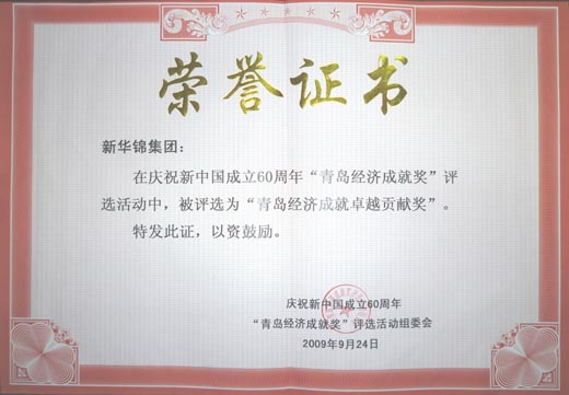 庆祝新中国成立60周年“青岛经济成就奖”评选活动中被评为“青岛经济成就卓越贡献奖” - 2009 - :: HIKING GROUP 新华锦首页(国际贸易)(金融投资)(老年颐养) ::