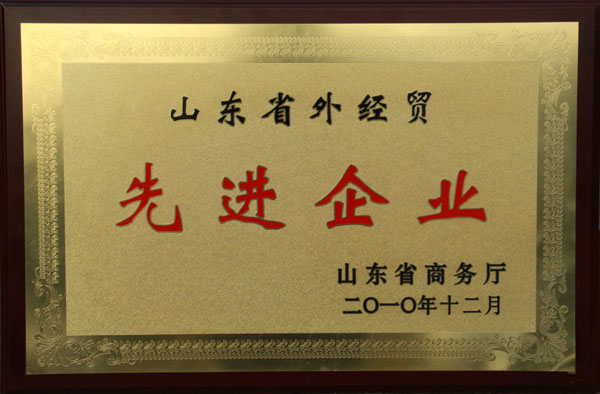 2010山东省外经贸厅颁发《山东省外经贸先进企业》