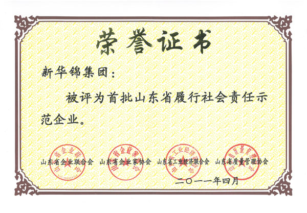 新华锦集团被评为首批山东履行社会责任示范企业 - 2011 - :: HIKING GROUP 新华锦首页(国际贸易)(金融投资)(老年颐养) ::