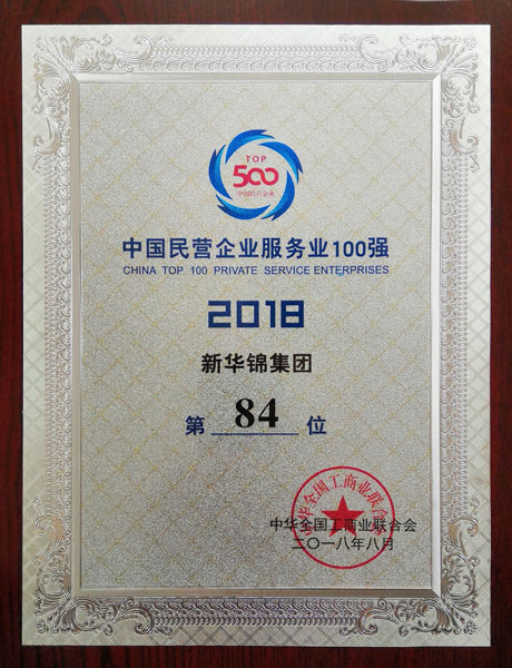 2018年中国民营企业服务业100强84位 - 2018 - :: HIKING GROUP 新华锦首页(国际贸易)(金融投资)(老年颐养) ::