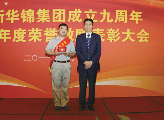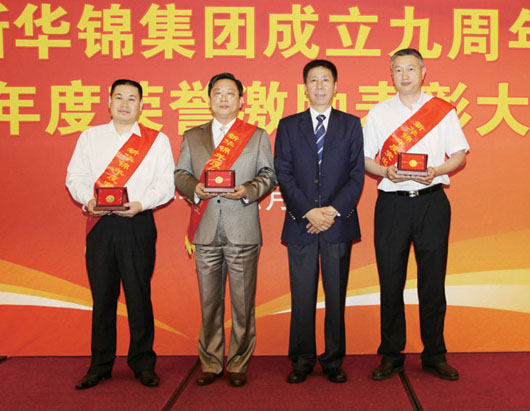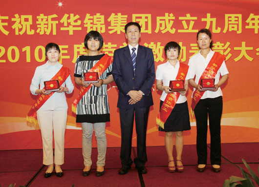 在欢快的乐曲声中,张董事长分别向荣获“新华锦最佳创新团队”、“新华锦最佳和谐团队”、“新华锦最佳管理团队”的员工代表颁发奖牌,向荣获“新华锦年度最佳技术创新员工”、 “新华锦年度最佳责任员工”、“新华锦年度模范员工”、 “新华锦年度突出贡献员工”和“新华锦优秀企业家”的先进个人颁发金质奖章。随后,获奖团队和个人代表、员工家属代表先后上台发言。