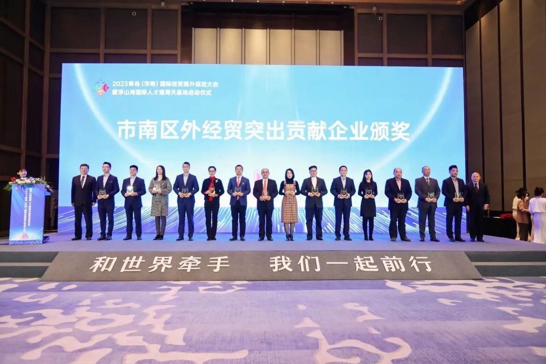 2月7日,市南区“2023青岛(市南)国际经贸提升促进大会暨浮山湾国际人才港海天基地启动仪式在海天中心举行。大会发布了《青岛市市南区外经贸发展报告》;对市南区外经贸行业优秀企业以及优秀从业人员表彰。新华锦集团荣获“市南区外经贸突出贡献企业”,集团常务副总裁张航代表集团领奖并致辞。