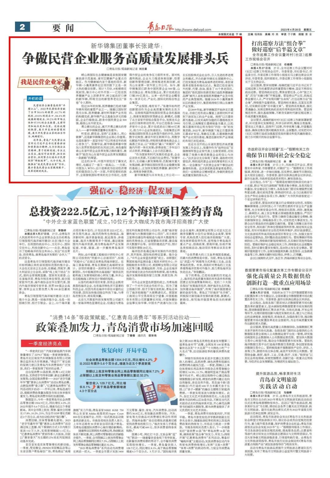 我是民营企业家丨《青岛日报》专访新华锦集团董事长张建华