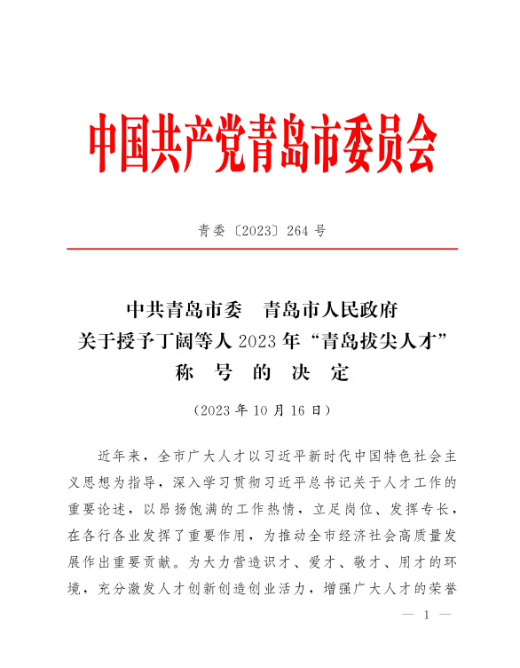 10月16日,中共青岛市委、青岛市人民政府印发《关于授予丁阔等人2023年“青岛拔尖人才”称号的决定》,新华锦集团董事、执行总裁张航荣获2023年度“青岛拔尖人才”称号。