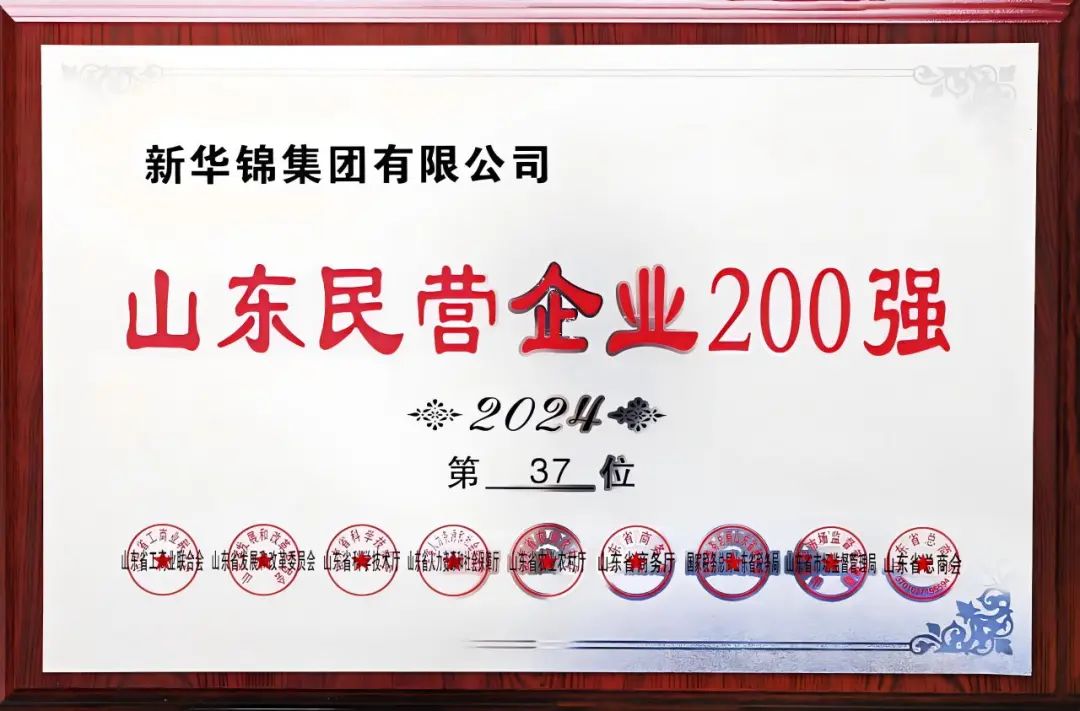 新华锦集团以2023年营业收入466.88亿元的成绩位列“2024山东民营企业200强”榜单第37位,“2024山东民营企业吸纳就业100强”榜单第48位。