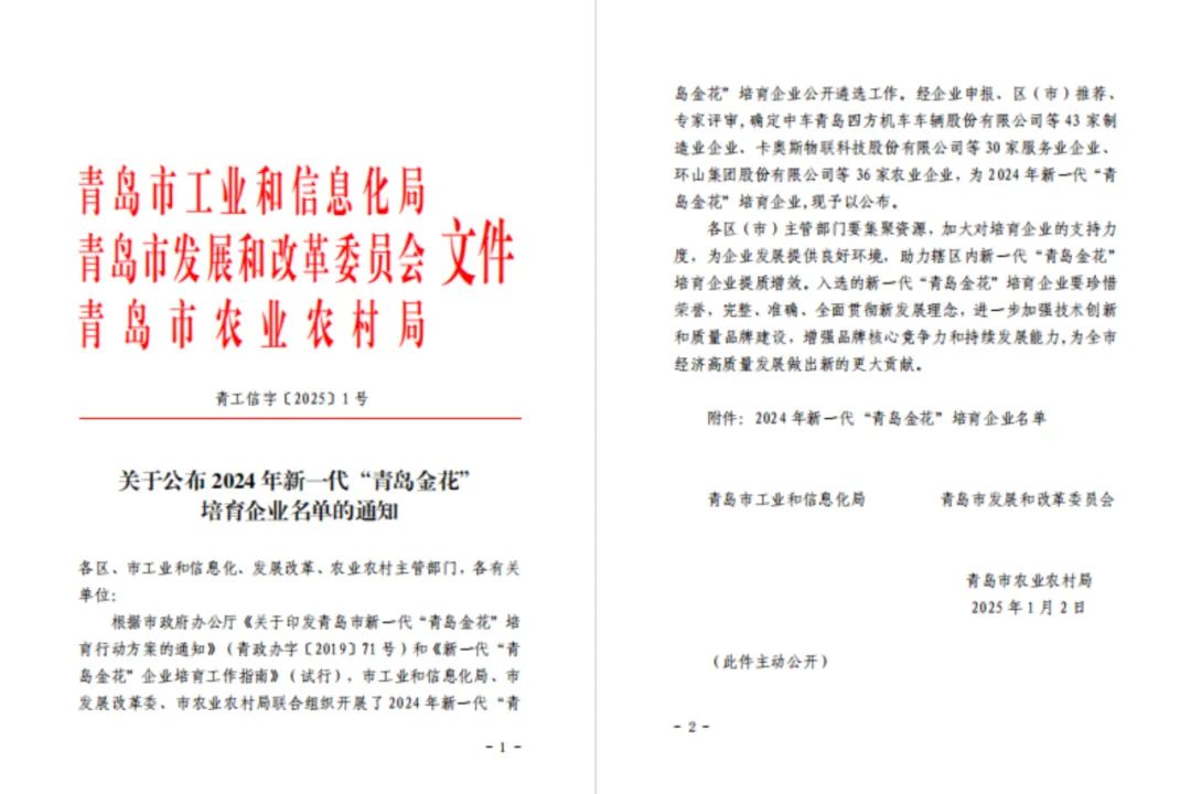 1月2日,青岛市工业和信息化局、青岛市发展和改革委员会、青岛市农业农村局发布《关于公布2024年新一代“青岛金花”培育企业名单的通知》,经企业申报、区(市)推荐、专家评审,确定了2024年制造业、服务业、农业新一代“青岛金花”培育企业,新华锦集团、即墨老酒分别入选服务业、农业类新一代“青岛金花”培育企业。