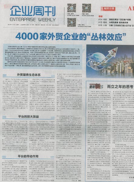 负责平台运营的新华锦商务集团的总经理王辉道向记者介绍,与以往外贸代理的根本区别在,平台依托线上综合式网站和线下国际贸易各环节的结合,提供包括融资、物流、退税、清关、信息咨询、客户介绍、产品展示和海外追账在内的涵盖国际贸易各个领域、各个环节的增值服务,在政府、大企业和中小微企业间建立起服务生态体系。