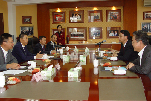 张董事长对俞载贤就任韩国驻青总领事表示祝贺,并简要介绍了集团的业务发展情况,回顾了新华锦和他本人与韩国各界的友好交往情况。张董事长说:自八十年代以来,我就致力于中韩双方友好事业的往来,参与了中韩间青岛至釜山首条集装箱定期班轮航线、威海至仁川首条客运航线的开通筹办工作。新华锦集团成立后,集团与韩国企业间的合作日益密切,双方在物流、港口、金融等领域进行了良好合作。今年2月,我获得了由韩国外交通商部长官柳明桓签发的第7657号奖状,这份荣誉对我来说十分珍贵。希望在俞总领事任上,能进一步推动新华锦与韩国企业间在各方面的深入合作。