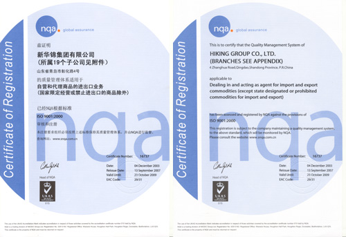 集团所属子公司全部通过了 ISO9001 : 2000国际质量管理体系认证